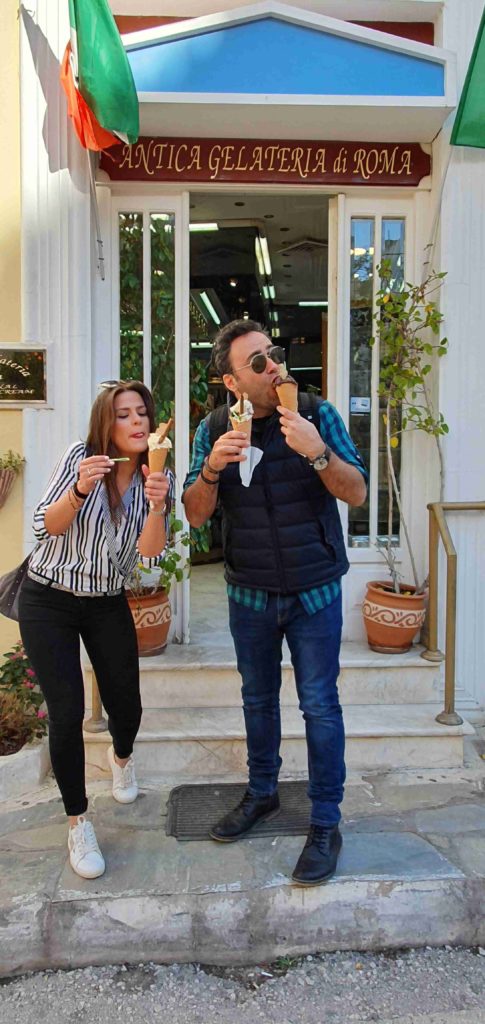 Ξεκινάς από τον Μαρτσέλο, τον Ιταλό, όπως το ξέρουν όλοι, με τη διάσημη αυθεντική gelateria του, που έχει γράψει ιστορία στην πόλη. Στο στενό, πίσω από την Πλατεία Συντάγματος, βρίσκεις τη θρυλική Antica Gelateria Di Roma.