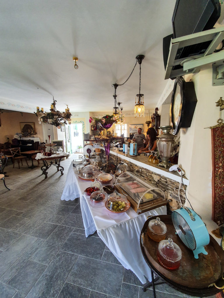 (Όλα τα καλούδια του πρωινού είναι ντόπια και χειροποίητα. Από την τοπική μανούρα μέχρι τις πίτες και τα γλυκά. Ωραίο σπιτικό πρωινό!).