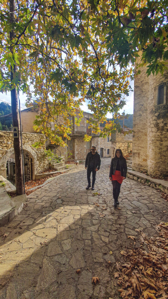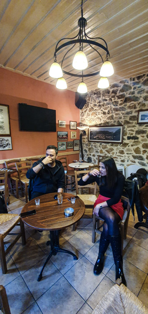 Τον χειμώνα, το χωριό έχει μόνο δύο κατοίκους, τον Σταμάτη και την Ανδριάνα. Πίνουμε τα τσιπουράκια μας στο μαγαζί τους, στο «Μοτίβο», εδώ θα τους βρεις.