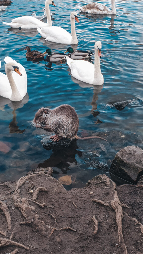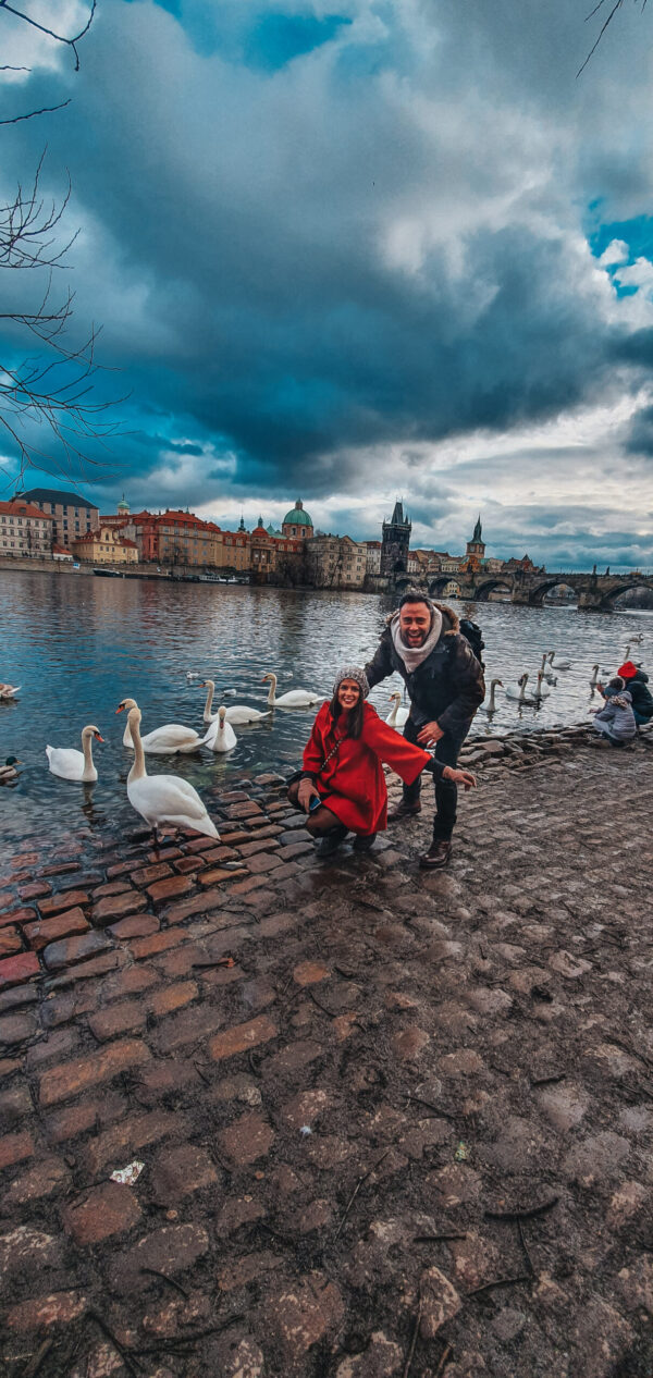Στις όχθες του ποταμού, κοιτώντας απέναντι μας την Παλιά Πόλη, συναντάμε αυτό το εκπληκτικό σκηνικό, με τους κύκνους της Πράγας.