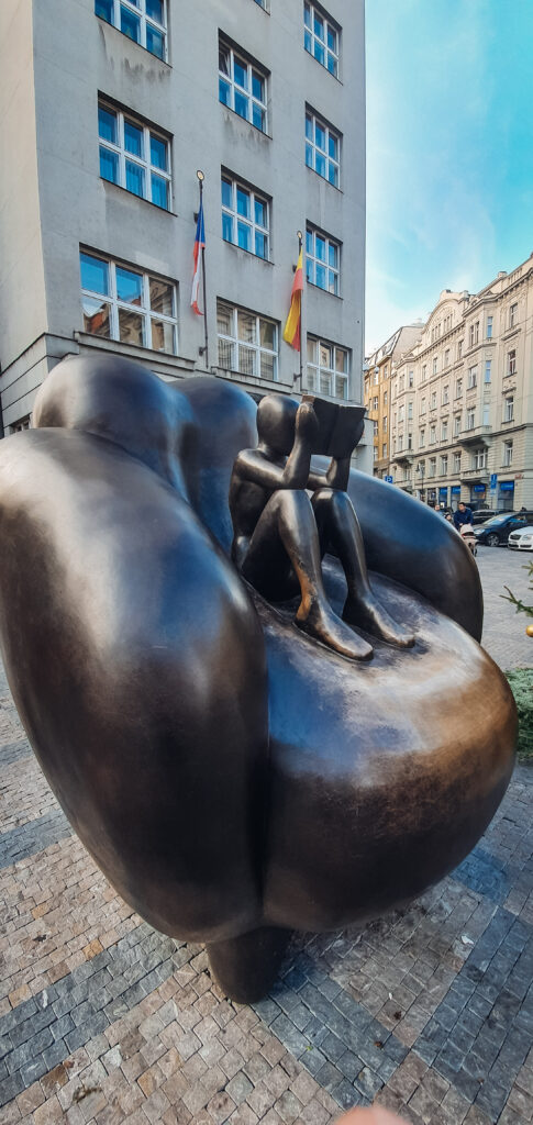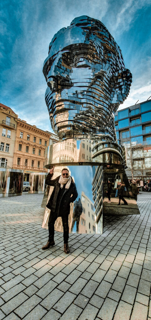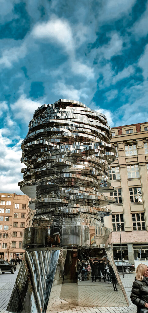 Ένα τεράστιο κινούμενο άγαλμα, που μεταμορφώνεται non stop (τιμώντας τη «Μεταμορφωση» του Κάφκα, ο οποίος πέρασε όλη του τη ζωή στην Πράγα και το έργο του είναι γεμάτο από τη μεταφυσική της γεωγραφία)