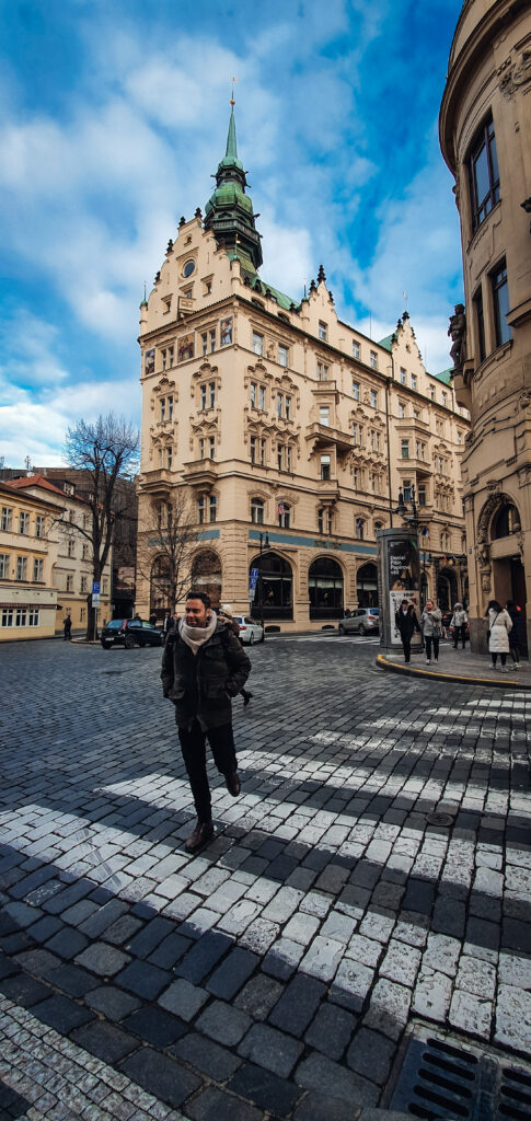 Στην οδό Platnéřská (στη γωνία του Δημοτικού Μεγάρου, που βλέπει στη Δημοτική Βιβλιοθήκη) βρίσκεται τομοναδικό άγαλμα αφιερωμένο σ’ ένα… φάντασμα! (δες στο Instagram μας τον σκοτεινό μύθο πίσω απ’ τον Σιδερένιο Άνδρα, θ’ ανεβάσουμε video).