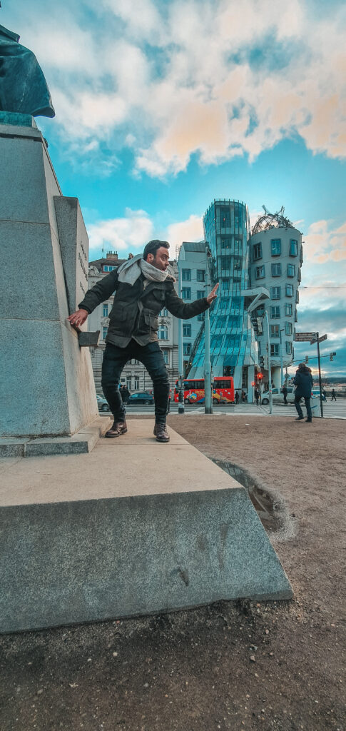 Το Dancing House είναι το πιο πολυσυζητημένο κτίριο της σύγχρονης Πράγας. Χτισμένο στα μέσα των 90s, μοιάζει σαν να χορεύουν δυο φιγούρες, η μία να κρατά την άλλη από τη μέση (ο Φρεντ Αστέρ και η Τζίντζερ Ρότζερς – γι’ αυτό και το εστιατόριο που φιλοξενεί στον 7ο όροφο λέγεται “Ginger & Fred”).